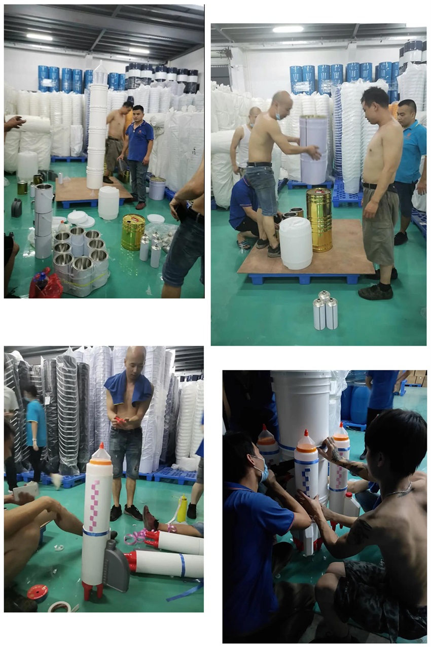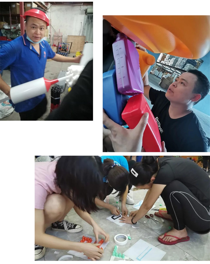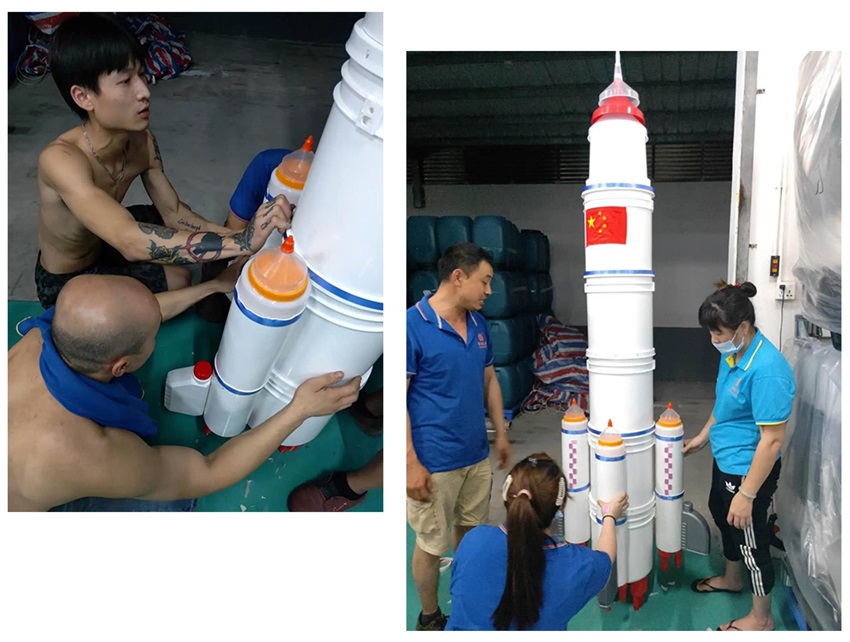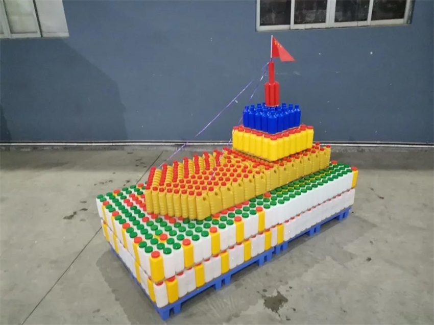 該隊(duì)模型作品”一波三折”,前期討論了多種方案,最終借鑒超市堆碼花式陳列的方式,確定做輪船,用方瓶,圓瓶、機(jī)油瓶系列進(jìn)行輪船的設(shè)計(jì),該作品象征吉安容器未來將繼續(xù)乘風(fēng)破浪,披荊斬棘,勇往直前,揚(yáng)帆遠(yuǎn)航。
