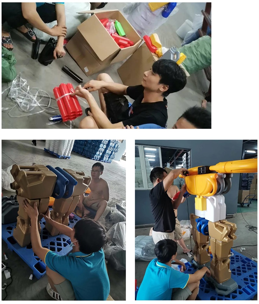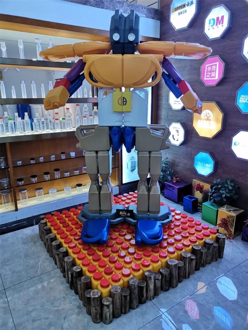 越前隊(duì)采用機(jī)油瓶系列產(chǎn)品進(jìn)行機(jī)器人造型拼接,機(jī)器人代表科技,代表未來,同時(shí)也象征著對未來的目標(biāo)和向往!寓意著公司以后能不斷發(fā)展壯大、向美好的未來奮力前行!只有想不到,沒有做不到,物盡所用,人盡所能,我們就是無所不能創(chuàng)意無限的變形金剛。