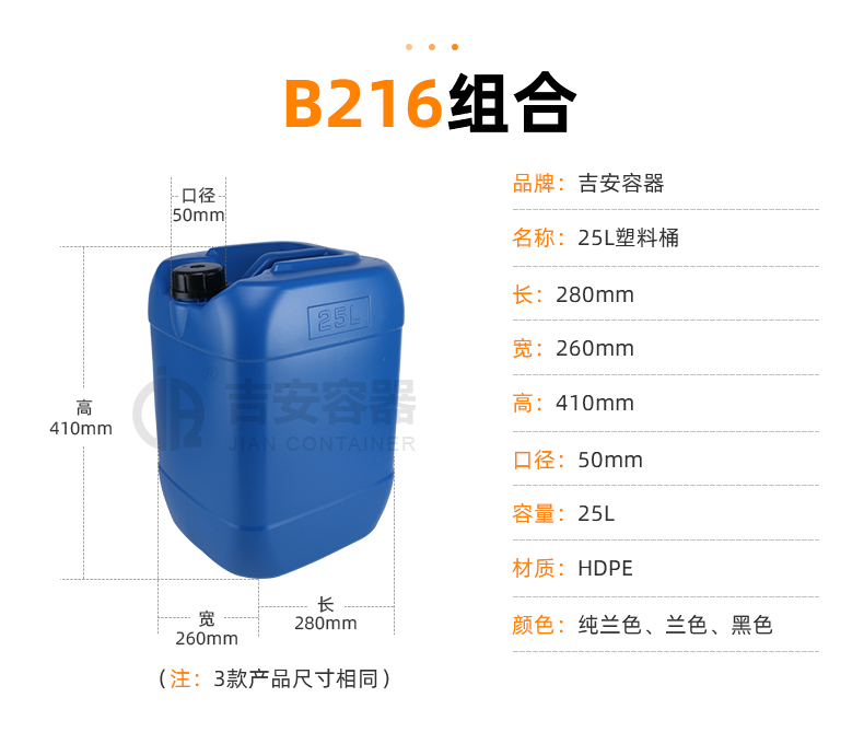 • 產(chǎn)品名稱:25L方扁塑料桶新料(B216)