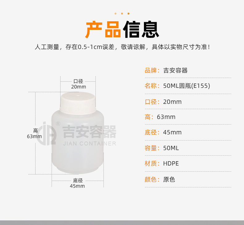 • 產(chǎn)品名稱:50G圓瓶(E155)