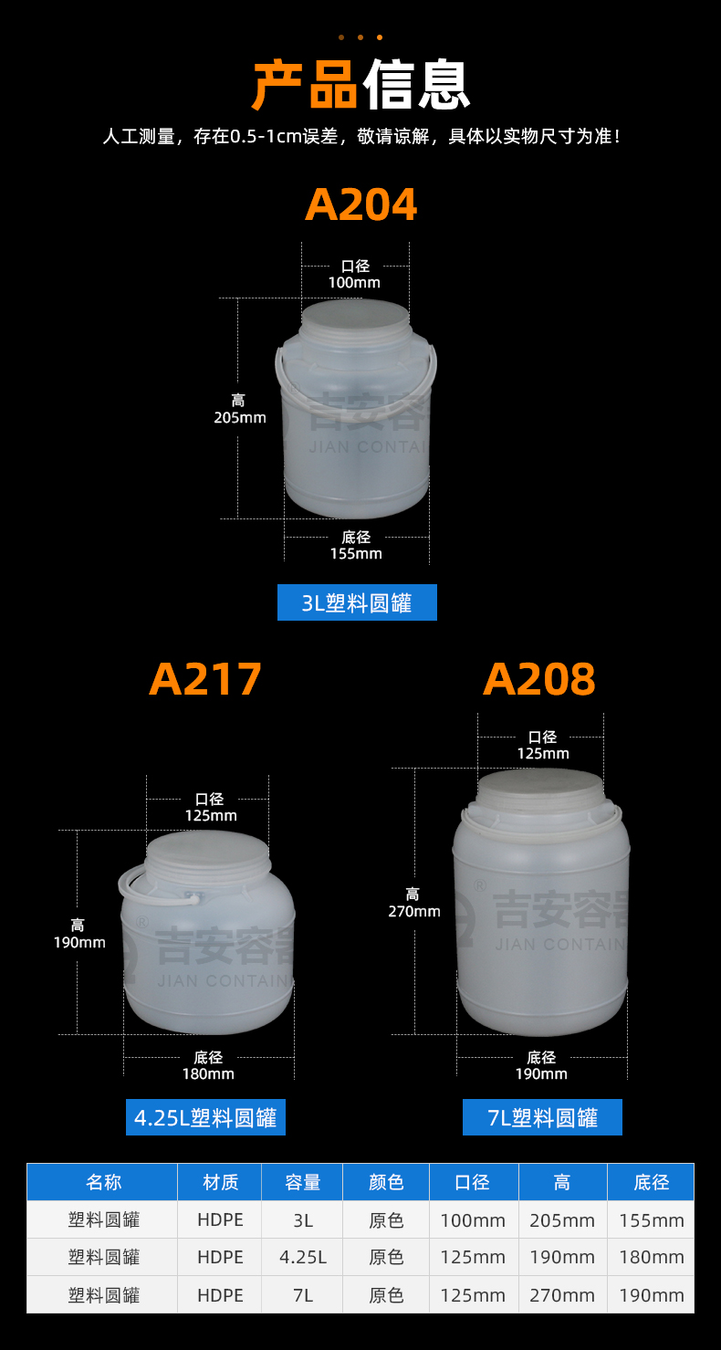 • 產(chǎn)品名稱:3L食品塑料罐(A204)
