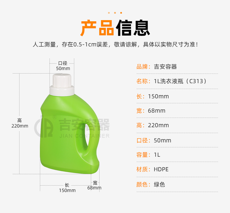 | 品名:1L綠色洗衣液瓶(C313) | |