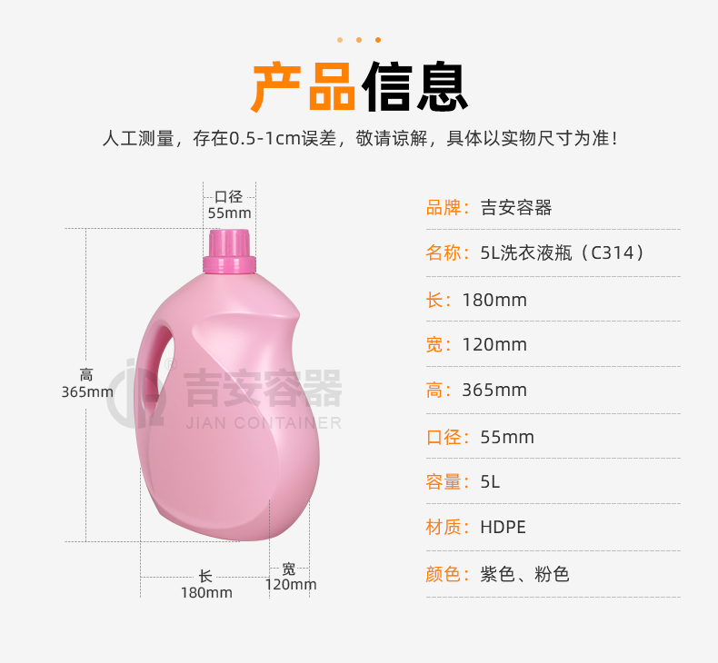 • 產(chǎn)品名稱:5L洗衣液瓶(C314)