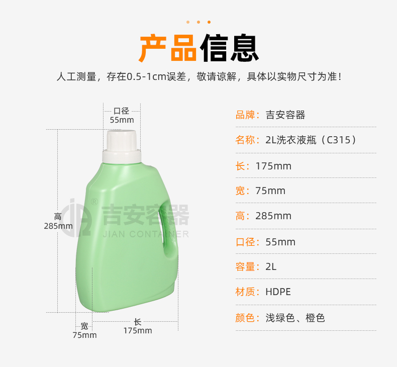 東莞市吉安包裝容器有限公司創(chuàng)立于2000年8月1日,是中國知名品牌企業(yè)。已通過ISO 9001質(zhì)量管理體系資質(zhì)認(rèn)證,加入了中國中空協(xié)會(huì),并獲得《中國知名品牌》,《國家標(biāo)準(zhǔn)合格產(chǎn)品》,《全國重合同守信用AAA級(jí)企業(yè)》,《質(zhì)量.服務(wù).誠信AAA企業(yè)》等榮譽(yù)稱號(hào)。根據(jù)材質(zhì)的不同,我們的產(chǎn)品分為塑料容器、鐵質(zhì)容器、鋁材容器、玻璃容器、紙質(zhì)容器等五大類。按產(chǎn)品的名稱分為塑料桶、塑料瓶、包裝桶、涂料桶、機(jī)油桶、油脂桶、化工罐、膠水瓶、鐵桶、鐵罐、鋁瓶、鋁罐、阻隔瓶、高阻隔瓶等,容量從3ML至1000L多種規(guī)格,多種款式。適合包裝的產(chǎn)品包括:化學(xué)試劑、化工原料、化工助劑、飼料添加劑、油墨、油漆、樹脂農(nóng)藥、日用化學(xué)品、聚氨脂、膠粘劑,廣泛應(yīng)用于化工、建筑、食品、醫(yī)療、生物等各領(lǐng)域。