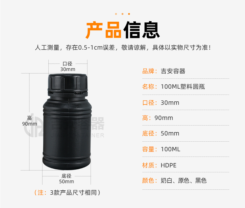 小口塑料瓶采用全新HDPE塑膠原料吹塑而成,具備韌性好、耐酸堿、耐腐蝕、不變形,密封性能佳等特點(diǎn),可根據(jù)客戶需求定制、改色、產(chǎn)品適用于化工、清洗劑、醫(yī)藥、液體、食品、農(nóng)業(yè)等各行業(yè)包裝。