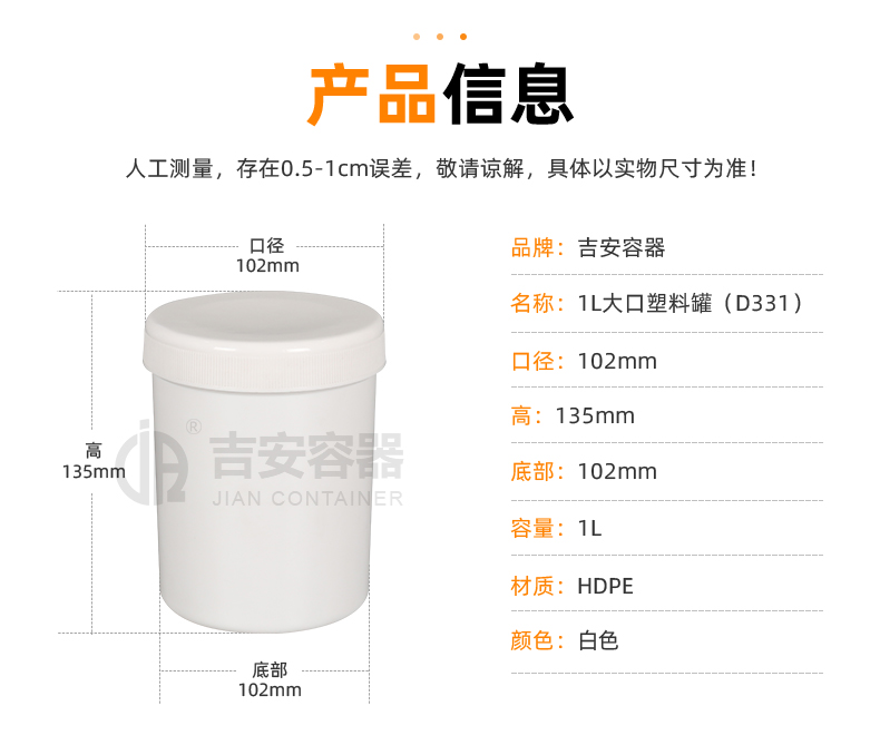 大口塑料瓶可分為螺旋式外蓋,按壓蓋外蓋、螺旋帶防盜等多種密封方式,內外壁光滑,敞口盛裝、倒放物品方便,耐酸堿、耐腐蝕,無味,防漏性強。