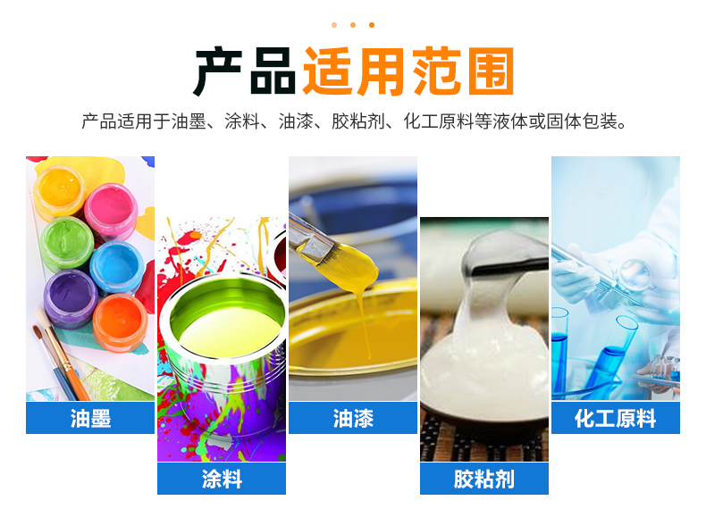 東莞市吉安包裝容器有限公司創(chuàng)立于2000年8月1日,是中國(guó)知名品牌企業(yè)。已通過(guò)ISO 9001質(zhì)量管理體系資質(zhì)認(rèn)證,加入了中國(guó)中空協(xié)會(huì),并獲得《中國(guó)知名品牌》,《國(guó)家標(biāo)準(zhǔn)合格產(chǎn)品》,《全國(guó)重合同守信用AAA級(jí)企業(yè)》,《質(zhì)量.服務(wù).誠(chéng)信AAA企業(yè)》等榮譽(yù)稱號(hào)。根據(jù)材質(zhì)的不同,我們的產(chǎn)品分為塑料容器、鐵質(zhì)容器、鋁材容器、玻璃容器、紙質(zhì)容器等五大類。按產(chǎn)品的名稱分為塑料桶、塑料瓶、包裝桶、涂料桶、機(jī)油桶、油脂桶、化工罐、膠水瓶、鐵桶、鐵罐、鋁瓶、鋁罐、阻隔瓶、高阻隔瓶等,容量從3ML至1000L多種規(guī)格,多種款式。適合包裝的產(chǎn)品包括:化學(xué)試劑、化工原料、化工助劑、飼料添加劑、油墨、油漆、樹(shù)脂農(nóng)藥、日用化學(xué)品、聚氨脂、膠粘劑,廣泛應(yīng)用于化工、建筑、食品、醫(yī)療、生物等各領(lǐng)域。