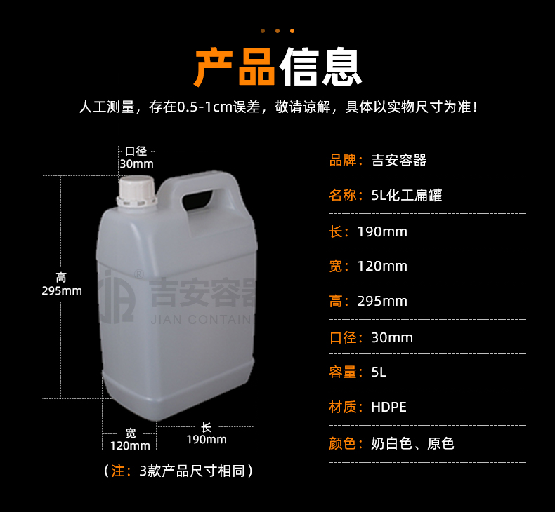 塑料扁罐采用HDPE原材料吹塑而成,具有良好的耐酸堿性及密封性,方形設(shè)計(jì)方便堆放,不占用空間,美觀實(shí)用。具備不變形,使用方便等特征,可根據(jù)客戶需求做印刷及貼膜,產(chǎn)品適用于尿素、機(jī)油、汽油、清洗劑、化工助劑、食品添加劑等液體包裝。