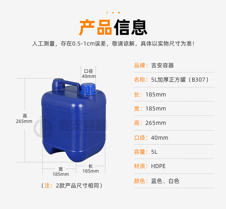 容量:5L 材質(zhì):罐蓋-PP,罐身-HDPE