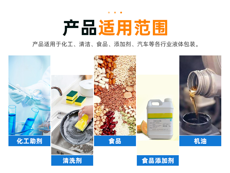 適用于化工溶劑、農藥、農業(yè)液體肥、硫酸、油墨清洗劑、橡皮布清洗劑、工業(yè)清洗劑、高效潤版液、潔版液、洗網(wǎng)水、開油水、納米陶瓷涂料、聚四氟乙烯(PTFE)涂料、有機硅涂料、聚醚砜(PES)涂料、特種工業(yè)涂料 。
