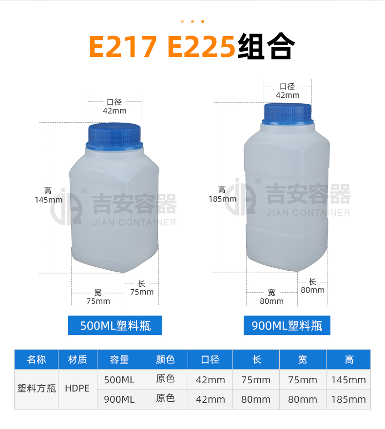 東莞市吉安包裝容器有限公司創(chuàng)立于2000年8月1日,是中國(guó)知名品牌企業(yè)。已通過(guò)ISO 9001質(zhì)量管理體系資質(zhì)認(rèn)證,加入了中國(guó)中空協(xié)會(huì),并獲得《中國(guó)知名品牌》,《國(guó)家標(biāo)準(zhǔn)合格產(chǎn)品》,《全國(guó)重合同守信用AAA級(jí)企業(yè)》,《質(zhì)量.服務(wù).誠(chéng)信AAA企業(yè)》等榮譽(yù)稱號(hào)。根據(jù)材質(zhì)的不同,我們的產(chǎn)品分為塑料容器、鐵質(zhì)容器、鋁材容器、玻璃容器、紙質(zhì)容器等五大類。按產(chǎn)品的名稱分為塑料桶、塑料瓶、包裝桶、涂料桶、機(jī)油桶、油脂桶、化工罐、膠水瓶、鐵桶、鐵罐、鋁瓶、鋁罐、阻隔瓶、高阻隔瓶等,容量從3ML至1000L多種規(guī)格,多種款式。適合包裝的產(chǎn)品包括:化學(xué)試劑、化工原料、化工助劑、飼料添加劑、油墨、油漆、樹脂農(nóng)藥、日用化學(xué)品、聚氨脂、膠粘劑,廣泛應(yīng)用于化工、建筑、食品、醫(yī)療、生物等各領(lǐng)域。