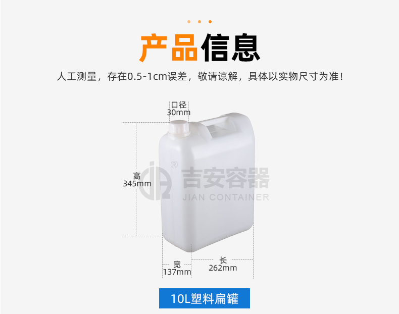 東莞市吉安包裝容器有限公司創(chuàng)立于2000年8月1日,是中國知名品牌企業(yè)。已通過ISO 9001質量管理體系資質認證,加入了中國中空協(xié)會,并獲得《中國知名品牌》,《國家標準合格產(chǎn)品》,《全國重合同守信用AAA級企業(yè)》,《質量.服務.誠信AAA企業(yè)》等榮譽稱號。根據(jù)材質的不同,我們的產(chǎn)品分為塑料容器、鐵質容器、鋁材容器、玻璃容器、紙質容器等五大類。按產(chǎn)品的名稱分為塑料桶、塑料瓶、包裝桶、涂料桶、機油桶、油脂桶、化工罐、膠水瓶、鐵桶、鐵罐、鋁瓶、鋁罐、阻隔瓶、高阻隔瓶等,容量從3ML至1000L多種規(guī)格,多種款式。適合包裝的產(chǎn)品包括:化學試劑、化工原料、化工助劑、飼料添加劑、油墨、油漆、樹脂農(nóng)藥、日用化學品、聚氨脂、膠粘劑,廣泛應用于化工、建筑、食品、醫(yī)療、生物等各領域。