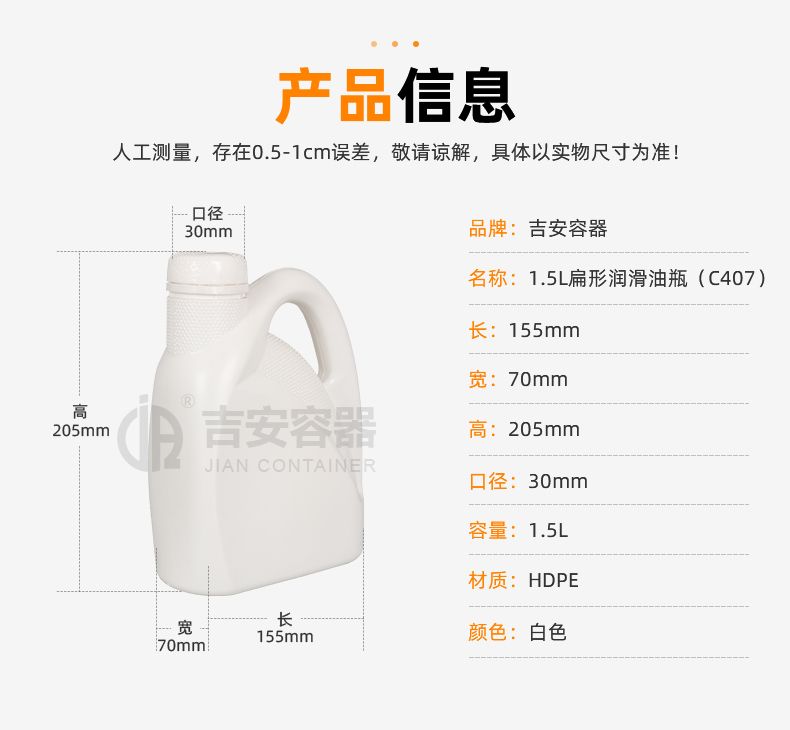 | 品名:1.5L扁形潤(rùn)滑油瓶(C407) | |