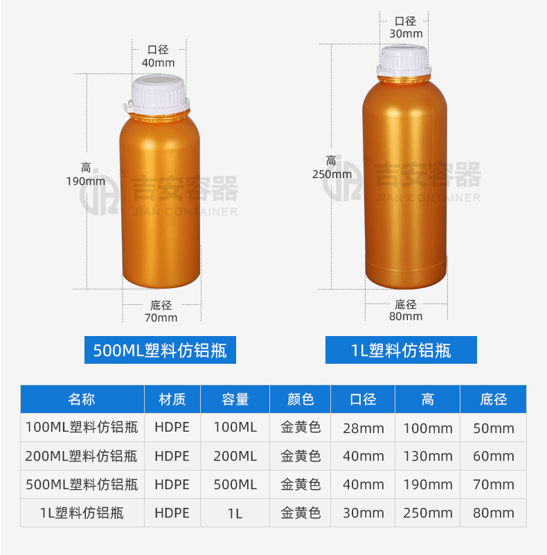 東莞市吉安包裝容器有限公司創(chuàng)立于2000年8月1日,是中國知名品牌企業(yè)。已通過ISO 9001質(zhì)量管理體系資質(zhì)認(rèn)證,加入了中國中空協(xié)會,并獲得《中國知名品牌》,《國家標(biāo)準(zhǔn)合格產(chǎn)品》,《全國重合同守信用AAA級企業(yè)》,《質(zhì)量.服務(wù).誠信AAA企業(yè)》等榮譽稱號。根據(jù)材質(zhì)的不同,我們的產(chǎn)品分為塑料容器、鐵質(zhì)容器、鋁材容器、玻璃容器、紙質(zhì)容器等五大類。按產(chǎn)品的名稱分為塑料桶、塑料瓶、包裝桶、涂料桶、機(jī)油桶、油脂桶、化工罐、膠水瓶、鐵桶、鐵罐、鋁瓶、鋁罐、阻隔瓶、高阻隔瓶等,容量從3ML至1000L多種規(guī)格,多種款式。適合包裝的產(chǎn)品包括:化學(xué)試劑、化工原料、化工助劑、飼料添加劑、油墨、油漆、樹脂農(nóng)藥、日用化學(xué)品、聚氨脂、膠粘劑,廣泛應(yīng)用于化工、建筑、食品、醫(yī)療、生物等各領(lǐng)域。